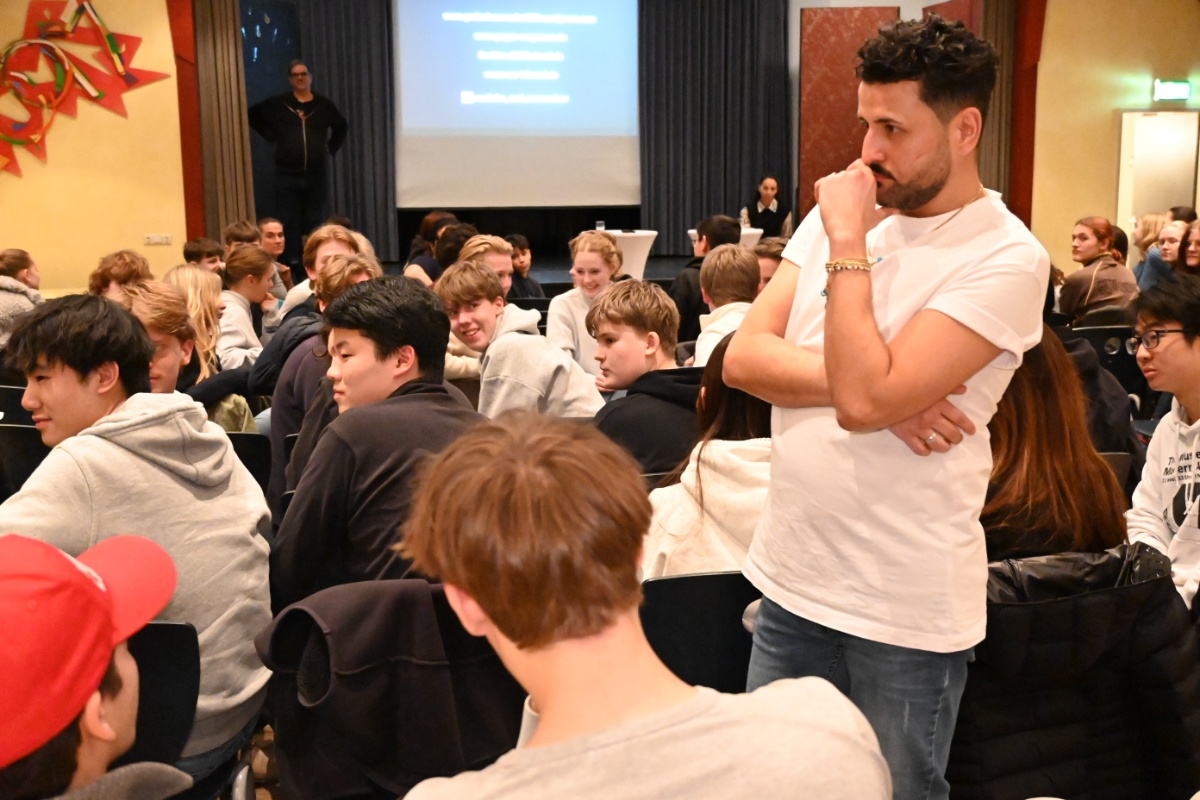 Gemeinsam mit Altschülerin Yasmina Alaoui, Patin des Netzwerks, diskutierte er mit den Jugendlichen über persönliche Erfahrungen mit Ausgrenzung. Dabei wurde deutlich, wie wichtig Sensibilität für Sprache und Verhalten ist. Arslan ermutigte die Jugendlichen, rassistische Äußerungen nicht unwidersprochen zu lassen und Betroffenen solidarisch beizustehen.